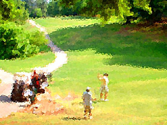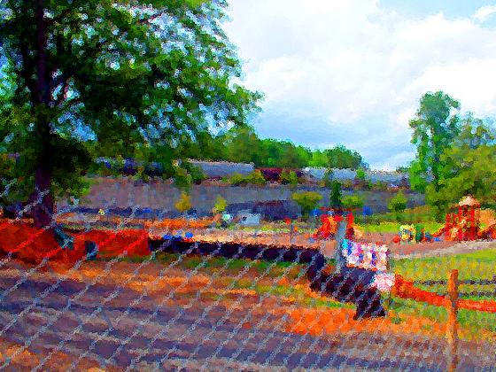 A little amphitheater had opened in the park. A lady from Nashville, Brinn Black, was singing. It was time to sit down. The lady could sing good, but lots of people can sing good. A few minutes later, there was a girls chorus singing the national anthem. This is a tough song to get right, and the girls did very well. There was a children’s area next to this walkway, down by the gazebo with the original sandy spring. There was a puppet show. PG is easily amused, but he does have standards. It was time to go back to the Target parking lot.