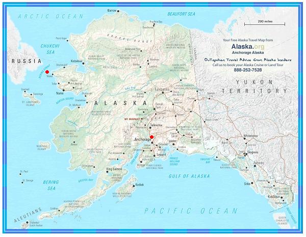 So, another search angle was required. The Alaskan government supplied this: Alaska and Russia are less than 3 miles apart at their closest point in the Bering Strait where two islands, Russia’s Big Diomede Island and Alaska’s Little Diomede Island, are located. In winter it is possible to walk across the frozen Bering Strait border between these two islands. At its closest, the American mainland and the Russian mainland are 55 miles apart where Alaska’s Seward Peninsula and Russia’s Chukotka Peninsula reach out to each other.