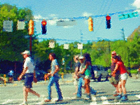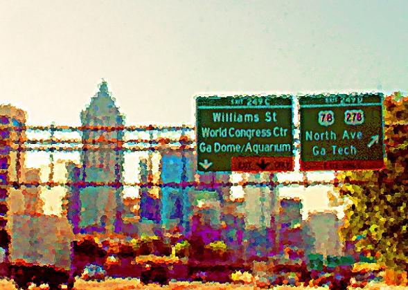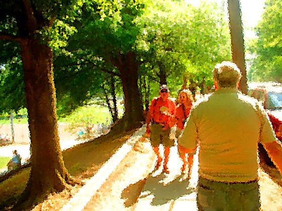 “So this friend of mine has a blog. He has a post about dragon con, with lots of pictures. Then he had a post about the Republican Convention. My comment was, comparing Dragon Con and The Repub convention, which group had the better grip on reality? I like what Rush Limbaugh said. God, Guns, and Babes, we got us a candidate Lets go walk over here, there is more shade and I have an idea for a picture. I hear that dragon con has gotten republican anyway, with greedy owners squeezing every dime they can. Of course, I have never been to it This monument is neat. You can pose next to it and paste in whatever you want where the sign used to be. you know, people always seem to like it when you take pictures of their dog What are you going to do with all those dog pictures? Paste them onto that picture of Sarah Palin. The one with her in a bikini holding a rifle There had been irresponsible talk about taking the long route around the softball fields by Grady High School. The reality is that the first sunday of september is pretty hot in Georgia. The two humans then passed the doggie park, and decided to go for a walk, sans canines. The doggie park had big rocks for dogs, and a few benches for people. The dogs and the people were very well behaved. Where do we go from here? The most direct route to your car, with the most shade