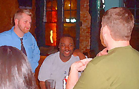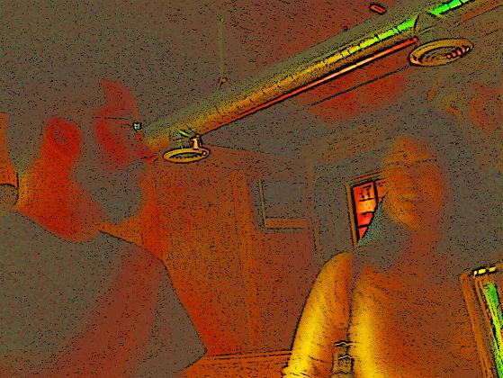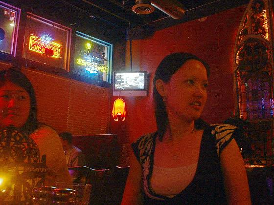 After a while, the party moved upstairs to the pool room. Several discussions broke out, on facebook friends, life at the fishwrapper, karaoke, going back to school, and trying to prove the big bang. John had an idea for a pool game…two people would start, and then hand the stick to someone else to take the next shot. When he found out that it was ten dollars an hour to rent the table, this was forgotten. Before long I was wondering when to leave. I got tired of waiting on others to say goodbye, and went down the stairs.