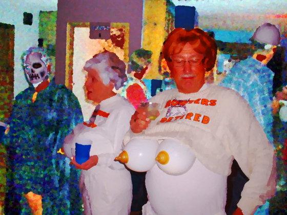 The food and costumes were lovely, and the people were nice to PG. He wore a Ralph Lauren shirt with a matching Red tie, which got comments from people used to a more casual PG. No one knew that PG had worn the same outfit to another party the previous saturday. A few costumes that were too efficient…the ghoul would know PG, who did not have a clue who it was. Just don’t say anything bad about anyone, you might be talking to that person.