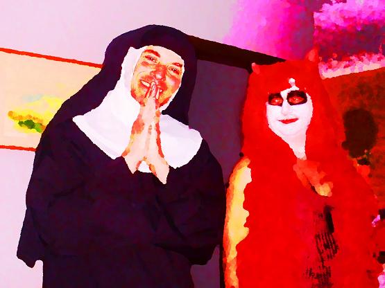 Guod was wearing a caveman outfit, and Liberty had on a handmedown red dress. Holly/Diane/Sasha, the original owner of the red dress, is in California now. Last PG had heard, Sasha fits into L.A.,after being out of place in Vegas. Diane was a stocky construction worker. He started trying on his wife’s outfits, and discovered that he looked better in them. Soon, David was cast aside, and Diane emerged. While the surgery is too expensive to contemplate, Diane is now a she.