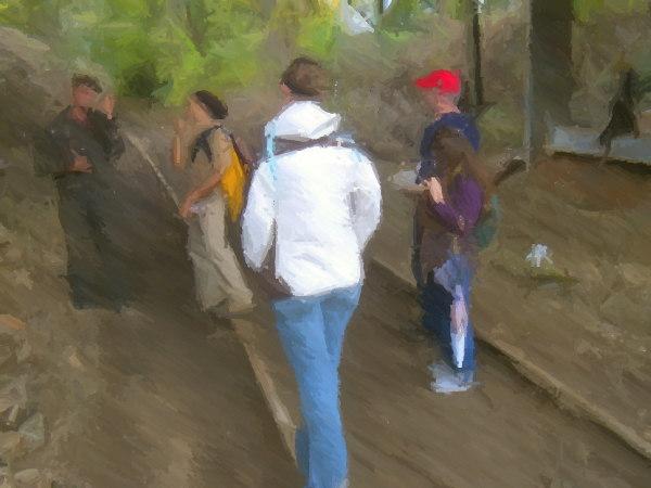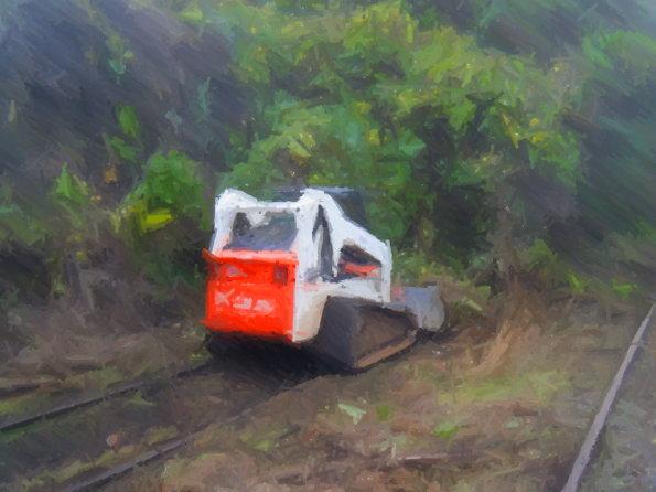 The hikers took a break in a restaurant near Inman Park. The word was that the next section of track was going to be overgrown with kudzu and briers. When the boots hit the ground, they found the tracks to be cleared of greenery. A little ways down the path, there was a bobcat clearing out the shrubs.