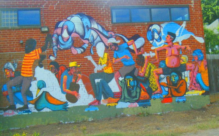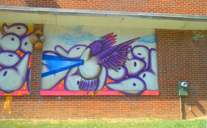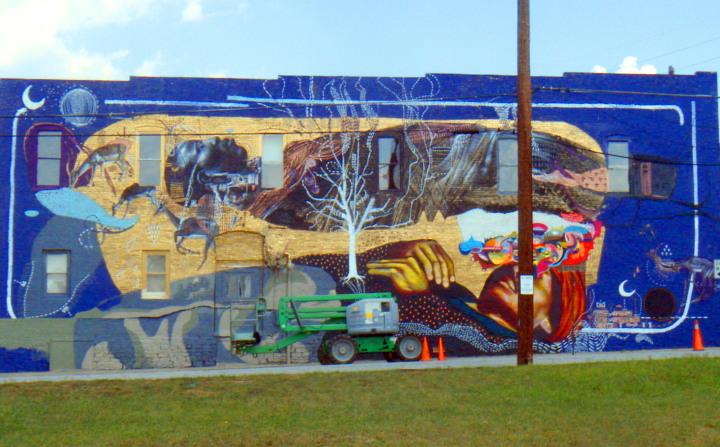 The first image was in downtown Decatur, across from the old courthouse. It was on the side of a business called Squash Blossom. A tree was in front of the mural,blocking the view.
