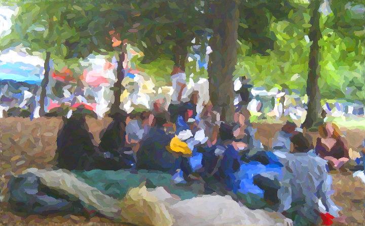 11:58:15PM “who do you serve, who do you protect”. The police arrest infrastructure is lining up on the sidewalks outside Woodruff Park. The crowd is chanting “who do you serve, who do you protect”. The park has been officially closed for 58 minutes. The police assault is believed to be imminent. 11:59:25 PM “whose park our park, whose park our park” “reply to the general welfare” There was an announcement to those with children, and those whose alien status is uncertain, to please move to the sidewalk. There is a division between the people who want to get arrested, and those who are not into that. 12:12:25 AM Commercial break on the live feed from slim jims spicy sticks. A representative from the mayor’s office was talking to reporters, and was shouted down by protesters. 12:19:13 AM The ad on the feed is from blue cross blue shield. “Lets show them lets show them that we are not that we are not leaving leaving” 12:27:28 AM They are having a “general assembly” in “troy davis park”. This means that some lady is screaming at the crowd, and they are repeating what she says back to her. They have decided to re occupy the park, and the Mayor is on the way to address the crowd. The police have not moved in yet, and some say they have backed down. There was an apparent massing of police forces on the fringe of the crowd, and now the police seem to be backing off. 12:37:52 AM The fishwrapper has announced that the mayor is allowing the people to stay. They are going to stay anyway. 12:45:21 AM rairojasii Rai Rojas Not sure if shouting “I am Troy Davis” to hundreds of police about to arrest you is wise. #OccupyAtlanta. #copkiller /// dezlock dezlock Really tempted to make a late night doughnut run to get the cops hopped up on sugar & caffeine before they clean up the park #OccupyAtlanta /// The general assembly is discussing what to say to the mayor when he arrives at the park. This speaker says and crowd repeats format that the meeting is taking gets very tiresome very fast. I hope this is not the way meetings go on from now on. /// “the press is on our ass, be on your best behavior please” 12:50:42 AM GrouchoMarxist Jon D.A. @KasimReed Please let #occupyatlanta stay in Troy Davis park. They are peaceful people, your constituents, your allies. Stand with them. 1:02:45 AM who is taking minutes…it’s important for transparency…I kind of am.. PG went downtown with Uzi Sunday afternoon to see the Occupy Atlanta facility. They found a parking lot on John Wesley Dobbs Avenue, and paid two dollars for two hours of parking. The parking meters in Atlanta are notoriously corrupt, and PG was eagar to get back to his vehicle. As it turned out, the car was there, unbooted and unbrokeninto, when they got back. Uzi wondered how the “real” homeless people felt about these hippies moving into the park. PG thought this was a good question. Then the park came into view. PG got a pictures of the camp with the Coca Cola sign in the background. Next was an image with the encampment in front of the GP building. Uzi did not know that the Koch Brothers own GP. PG has mixed feelings about renaming the park for Troy Davis. The Woodruff family has been good for the city. While there is enough doubt about the guilt of Mr. Davis to object to his execution, PG does not want to make a hero out of the man. Learning about an issue will do that for you. 1:22:32 AM Quinnnerd Quinn Edgar Mayor needs to come so I can sleep. #occupyatlanta /// The GA is getting stuck on the issue of whether to ask the mayor whether to rename Woodruff Park as Troy Davis Park. “he will realize that his opinion is secondary””we should be asking the mayor to abolish the death penalty” /// 1:25:11 AM caulkthewagon Robin by Occupy_Boston We will rack up arrest records ten miles long. We don’t fucking care. We have nothing left to lose. /// some say the Boston police are moving in, some say they are backing down /// drewwill Drew @ RT @RTColvin: Wouldn’t it be neat if #OccupyAtlanta was really a @WalkingDead_AMC marketing stunt? #whenwilltheyturnintozombies /// 1:35:31 AM mike check i would like to propose that mayor reed provide better restrooms for this park ///make check i would propose to turn those g-d awful sprinklers off /// 1:37:38 AM the general assembly decides that the mayor is not going to come, and that tonight is a tremendous win for the people of atlanta 1:42:07 AM Occupy_Boston Occupy Boston KEEP TAKING PICTURES. WRITE DOWN BADGE NUMBERS. Occupy Boston Police are going in now #occupyboston 43 seconds ago Occupy Boston Cops are beating Veterans for Peace 42 seconds ago 1:57:03 AM We are being inundated by young good doers. Get them and their money out. Go home! Leave us alone. Change the world from your home. Leave us alone. Get out of New Orleans. Your money helps the machine, not us./// Update The police never moved in. Here is an on the scene report ./// selah