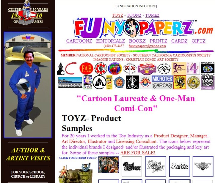 The screen shot is from his site, funnypaperz. The rainbow banner is a tasteful touch.