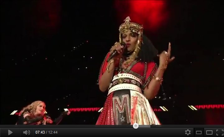 There is talk about a performer shooting a bird during the show. After more examination than is really appropriate, this youtuber has decided that it was the index finger that was extended. The lady thought that Madonna was number one.