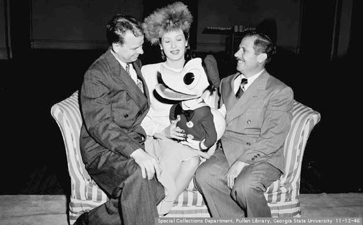 In 1946, “Song Of The South” had it’s premiere at the Fox Theater. SOTS is a controversial item these days. It was based on the Uncle Remus stories, which were written down by Joel Chandler Harris. For those who don’t know, these stories were told by the rural black people that Mr. Harris knew when he was growing up near Eatonton GA. As Wikipedia tells the tale “Controversy surrounding his southern plantation themes, narrative structure, collection of African-American folklore, use of dialect, and Uncle Remus character, however, has denigrated the significance of Harris’ work”. In other words, Brer Rabbit is not politically correct.