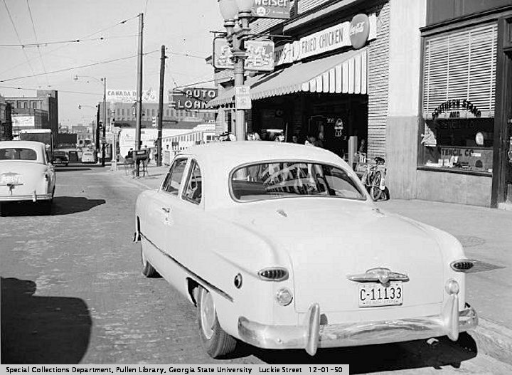 Jean lived for many years with her mother and sister at 939 Piedmont, among other locations. She joined the First Baptist Church and sang in the choir. She got a job with the C&S bank, and was working at the Tenth Street Branch when she met Luther McKinnon. He was a native of Rowland, North Carolina. They were married October 6, 1951.