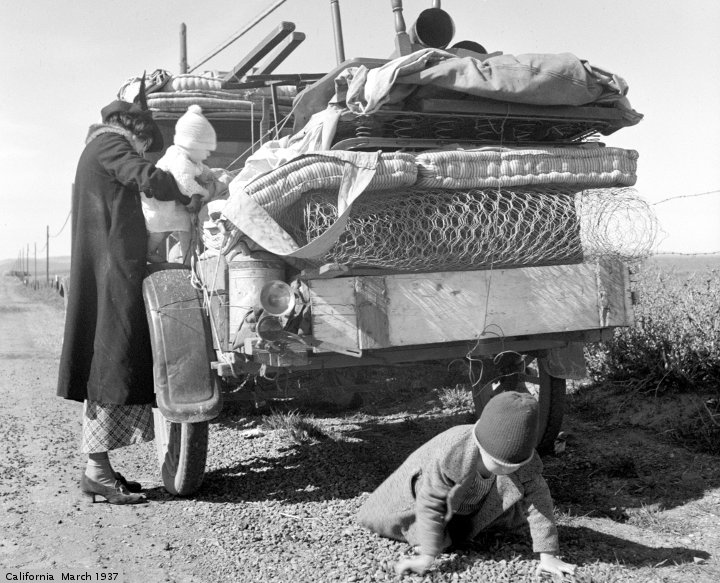 While listening to the show, PG was editing pictures from The Library of Congress. These pictures are presented with this post. These pictures are from the Farm Security Administration. The California pictures were taken by Dorothea Lange. The Illinois pictures were taken by Russell Lee.