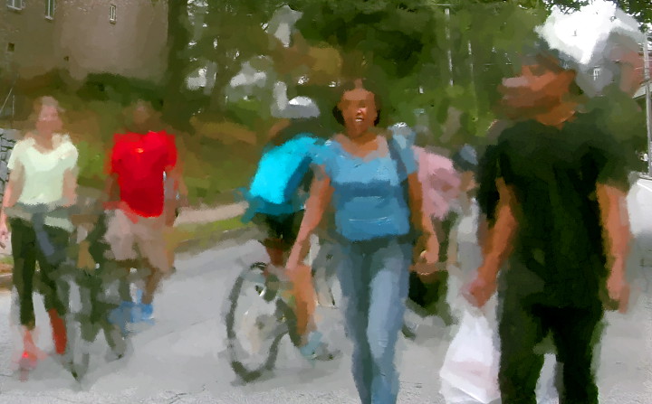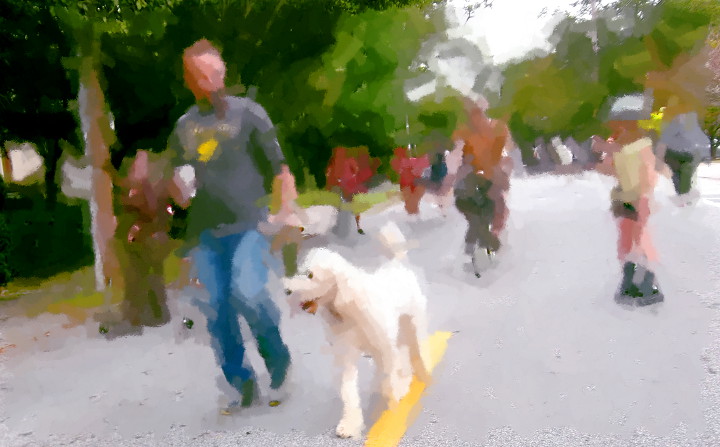 After crossing Glen Iris, and going up the hill, the street got even less crowded. A pack of skateboarders went down the hill at breakneak speed. One almost wiped out in front of PG. Soon after that, a policeman came by talking on his radio. PG kept walking.