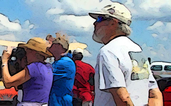 “Pecos Mac” McCarthy index-fingered back the brim of his battered Stetson, squatted at the edge of the waterhole, cupped a handful of brackish water, squinted out over the shimmering alkali flats of the Badlands, and decided then and there that he had prit’ near had it with overwrought, hackneyed western imagery. — Joseph Pramuk, Napa, CA