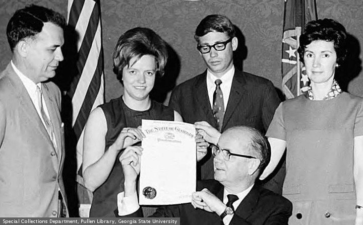 And the story goes on. The Vortex will endure, serving hamburgers and booze. PG ate there once, and decided that *The Vortex is Bennigans, with a nose ring.* The no idiot policy will be selectively enforced. BLMGA will find more stories to glomm onto. Kristina White, the server, and the servers bf, will go on to new adventures. The spell check suggestions for Maejor are Major and Marjorie. Pictures today are from “The Special Collections and Archives, Georgia State University Library”.