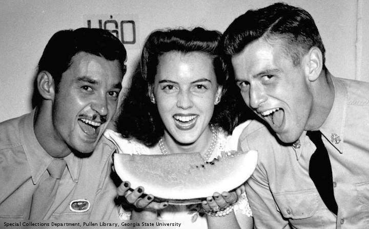This is a repost. Some of the websites quoted in this piece are now “frozen.” Some of the details quoted cannot be verified. Maybe popcorn was number one. Historic pictures for today’s event are from “The Special Collections and Archives, Georgia State University Library”.