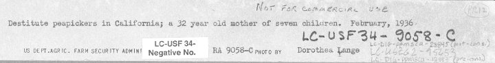 This feature started with a google search for the correct way to pronounce Dorothea Lange. (Readers of this blog have seen the fondness for Library of Congress historic pictures. Ms. Lange is one of their stars.) This search led to a teacher’s guide from Yale University. This guide is about Dorothea Lange and the Migrant Mother. It tells the story as well as PG could. Bless his pea picking heart.
