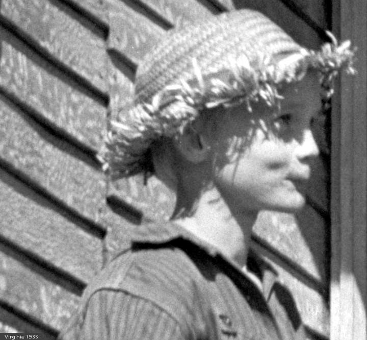 Looking at the pictures reveals a glitch in the famous picture. If you look in the part of her hair, you will see a gray stripe. This is a bit of damage to the negative, and is common to old photographs. Ordinarily, PG would paste over a spot like that, but this is a sacred photograph.