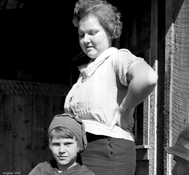 The day Lange photographed Thompson, she and her family were driving towards Watsonville, hoping to pick lettuce in the Pajaro Valley. The timing chain on their car broke just outside Nipomo, and so they pulled into the pea -pickers camp to fix it. While fixing the chain, the radiator was punctured; Thompson’s two boys (and likely her male companion) (Wikipedia says it was husband Jim Hill) brought the radiator into town to be fixed. While they were gone, Lange arrived…