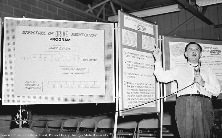 To sum up, the Georgia state flag was changed in 1956. The new flag contained the Confederate battle flag. Many people were offended by the 1956 flag. PG thought it was ugly. Many others saw it, with some justification, as a symbol of racism. For some reason, speculation about the motives of the 1956 legislature arose. 18 years after the passage of a new flag, people are still arguing over the motives of the 1956 legislature. Pictures today are from “The Special Collections and Archives, Georgia State University Library”. Previous postings of this feature include many details omitted today.