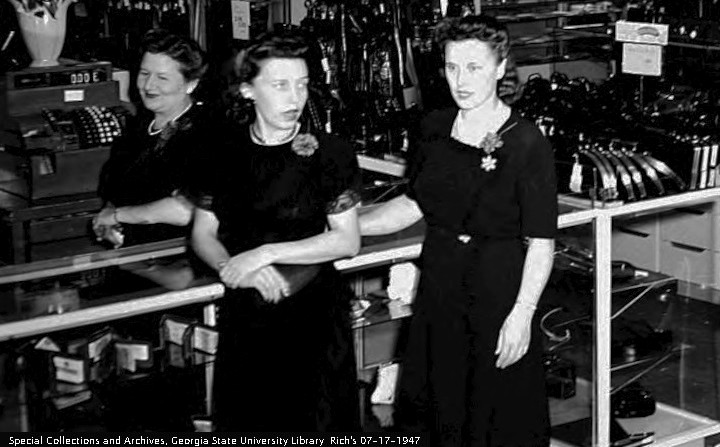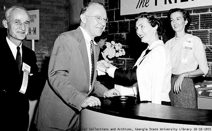In 1964, Mom went back to work. She ran the drive in window at Lenox Square for the Trust Company of Georgia until it was time to retire. She became a talk radio fan when RING radio started, and was a friend of her customer Ludlow Porch. She gave dog biscuits to customers with dogs.