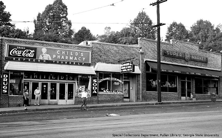 This content was published November 16, 2008. … At about 1:30, PG called Uzi, and said to meet behind the waffle house. Today, the sunday walk was going to be in East Atlanta …. PG was true to form in making a wrong turn on the freeway, forcing a drive down Spring Street to North Avenue. There was little traffic, and soon the men were on Moreland, crossing I 20, and making that weird turn off Moreland onto Flat Shoals. … The East Atlanta shopping district is not very big. It can be covered on foot in a few minutes. There are plenty of unused buildings, and former parking lots with a fence in front. The transitionality of the neighborhood is a work in progress.