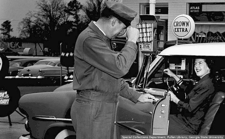 I recently spent a week at a community with solar power. There were constant reminders to use the juice sparingly. I tried to recharge my cell phone, and the system was not strong enough to do so. While solar can reduce the dependence on “the grid”, it is not going to completely replace it. We could do well to use less energy. We have gotten spoiled, like the man who wants an emerald green lawn in October. Part of the answer would be to live simply, so that others can simply live. … Pictures today are from Georgia State University Library The social media picture was taken February 22, 1955. Standard Oil service station in Buckhead ©Luther Mckinnon 2025 · selah