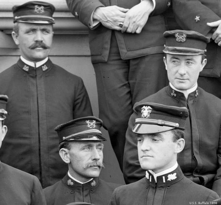 U.S.S. Buffalo officers are the next picture. This is a group picture, which will be broken down into segments. When you take a group shot, and edit the image into individuals, you realize that every man in the image is a different human being. This is lost in a group photograph. Meanwhile, the story ran out of time. The young lady told her husband about the video, and got to see him re-enact it. The husband was the “one boyfriend I didn’t tell.”