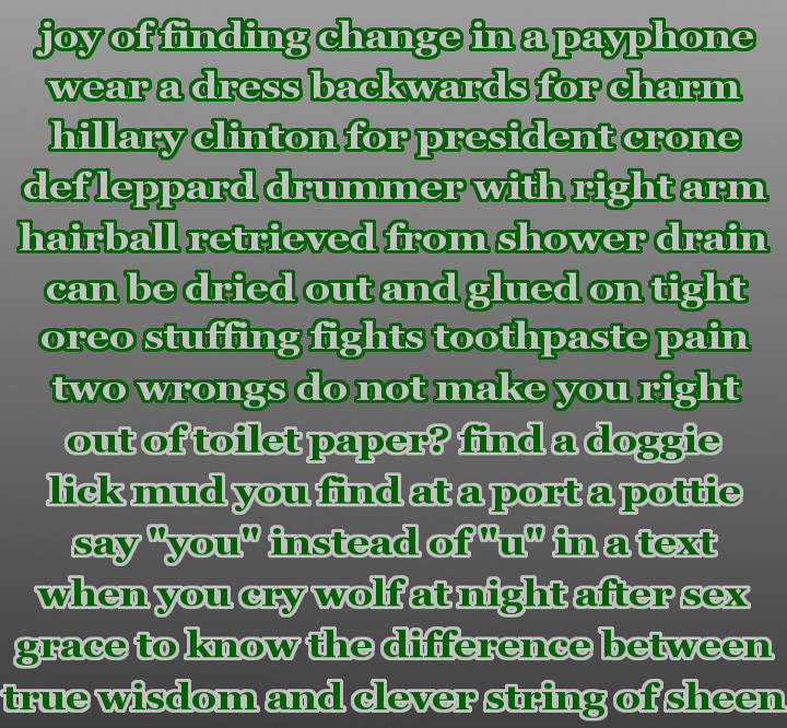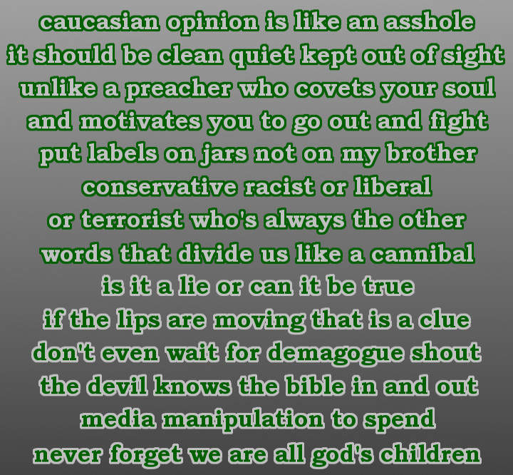 You know I love you. And I am indeed thankful for my family. I used to have a handle on life, but it broke. Follow the rules and we’ll all get along just fine.