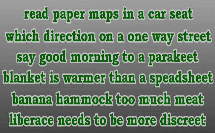 The idea was to meet south of dickhater, in a trendy coffee shop, and play bananagrams. The bg game is similar to scrabble, using wooden tiles with a letter. You draw 21 letters, and start to make crossword puzzle thingies. (a b c d e) When someone uses their allotment, everyone draws another letter. You continue until someone has used all of their letters. At this time, you combine your words into a poem. Unless someone gets too competitive, and shoots someone, bg is a good time.